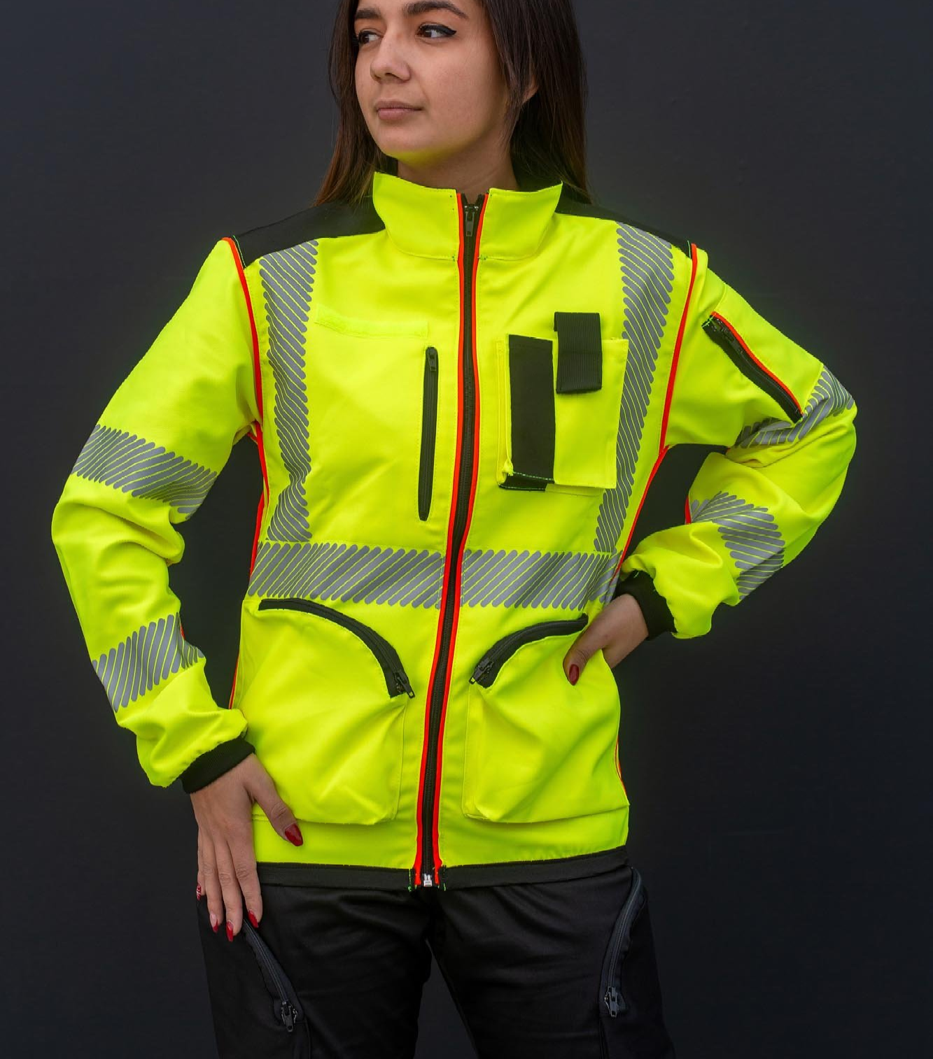 Disponibile nei colori: giallo fluo, rosso fluo, blu scuro con inserti in contrasto